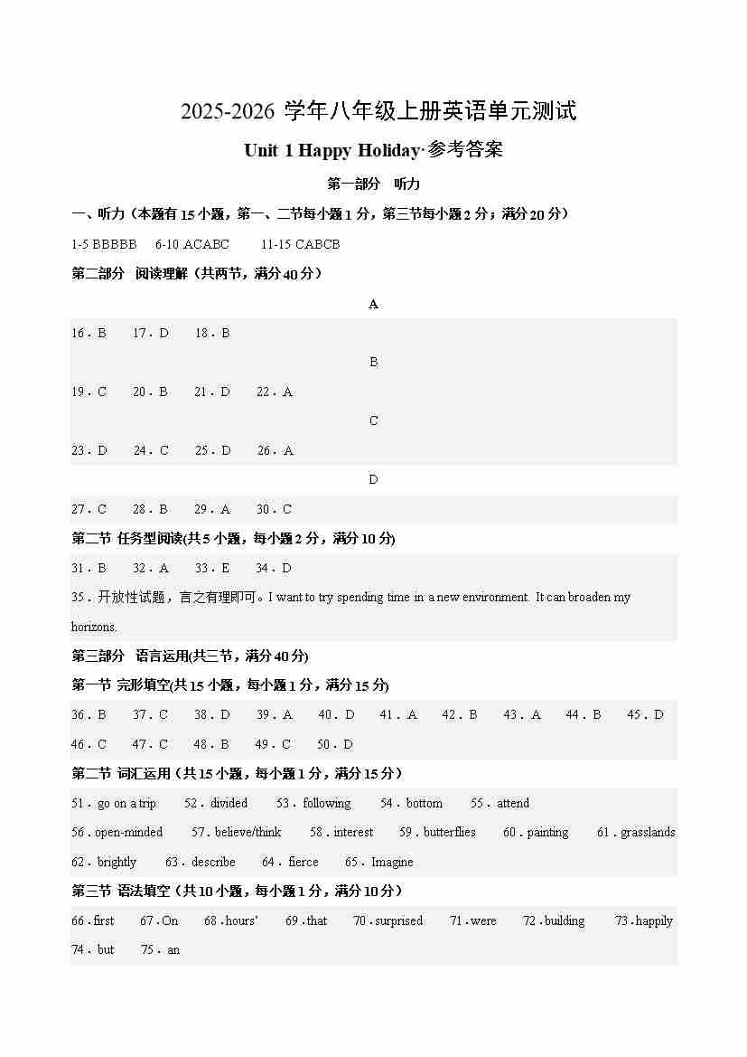 首页 > 全部 > 单元提升卷 > 八年级英语上册Unit 1 单元测试·提升卷(参考答案)
