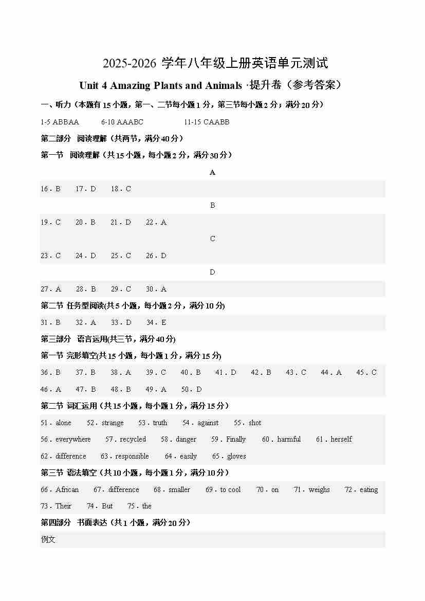 首页 > 全部 > 单元提升卷 > 八年级英语上册Unit 4 单元测试·提升卷(参考答案)
