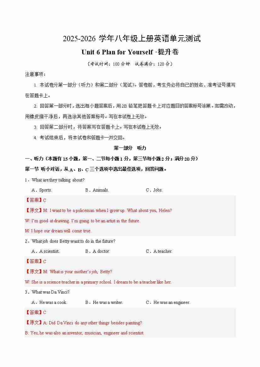 首页 > 全部 > 单元提升卷 > 八年级英语上册Unit 6 单元测试·提升卷(解析版)..