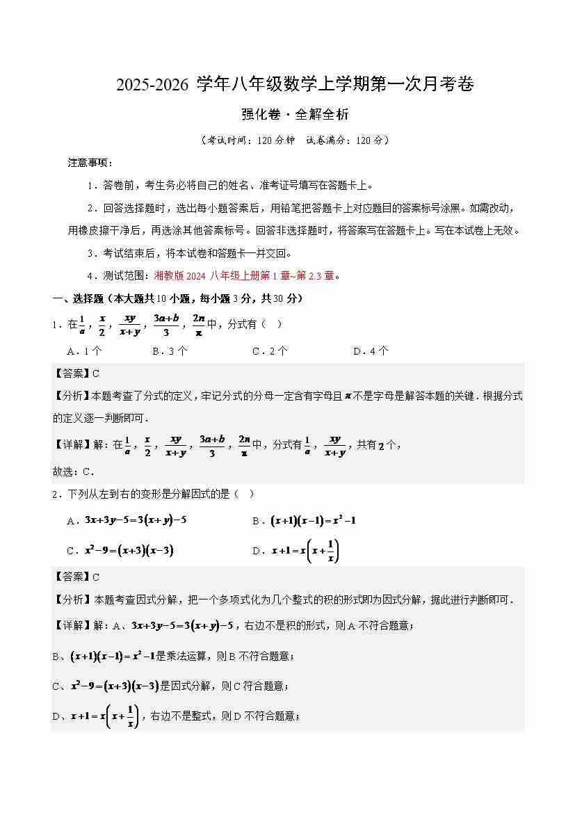 八年级数学上学期第一次月考(高效培优·强化卷)(全解全析)