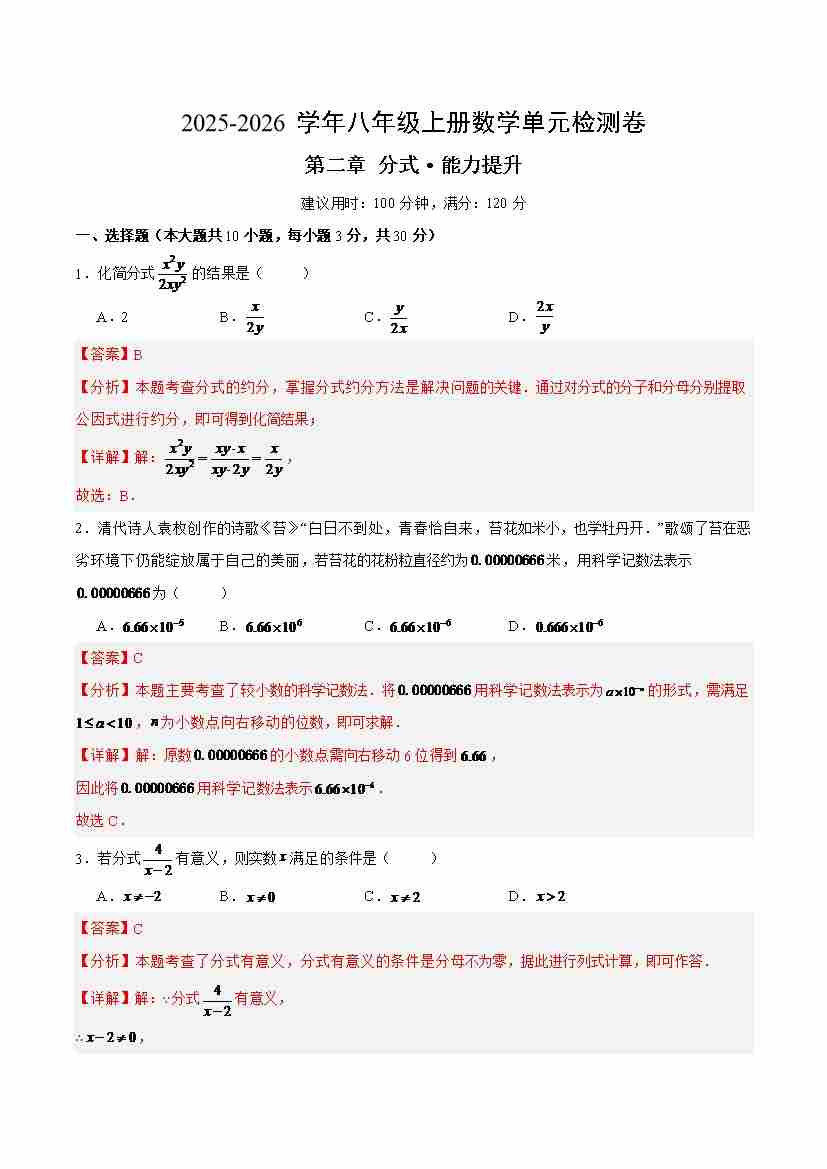 第二章测试·提升卷(解析版)