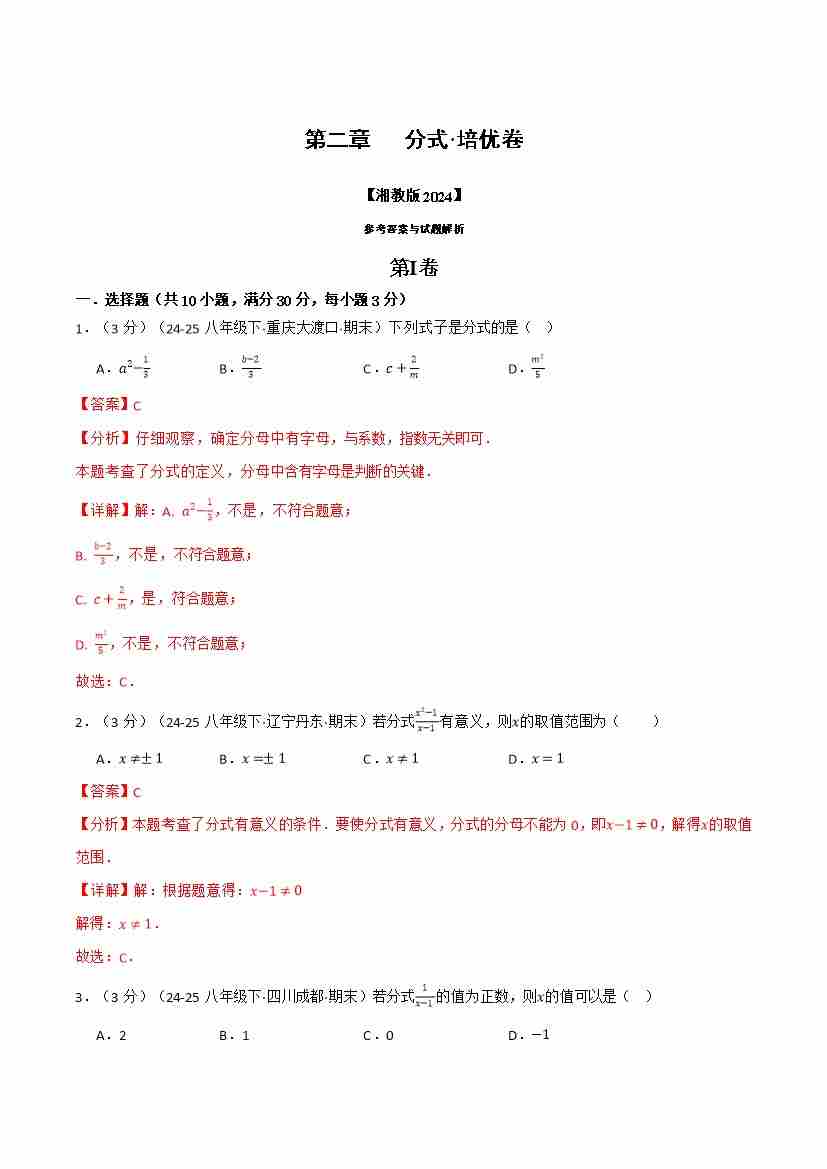 首页 > 全部 > 单元AB卷 > 第2章 分式(举一反三单元测试·培优卷)(解析版)