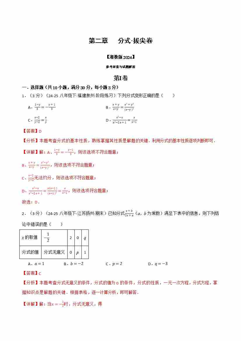 第2章 分式(举一反三单元测试·拔尖卷)(解析版)