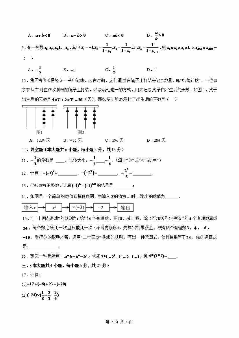 首页 > 全部 > 单元测试 > 第2章 有理数的运算(单元重点综合测试)(原卷版)