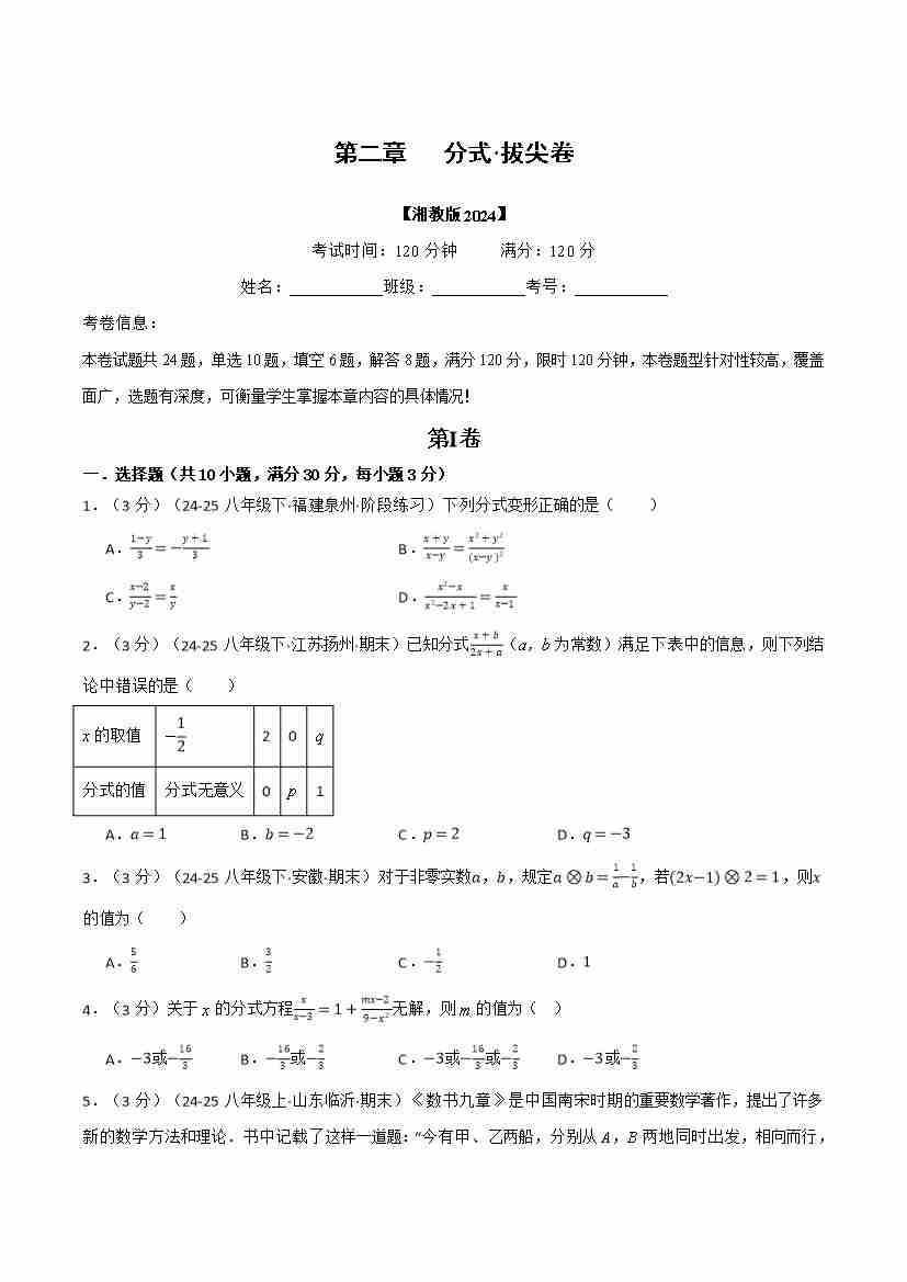 首页 > 全部 > 单元AB卷 > 第2章 分式(举一反三单元测试·拔尖卷)(原卷版)
