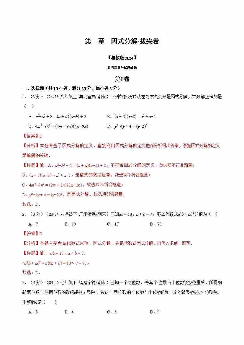 第1章 因式分解(举一反三单元测试·拔尖卷)(解析版)