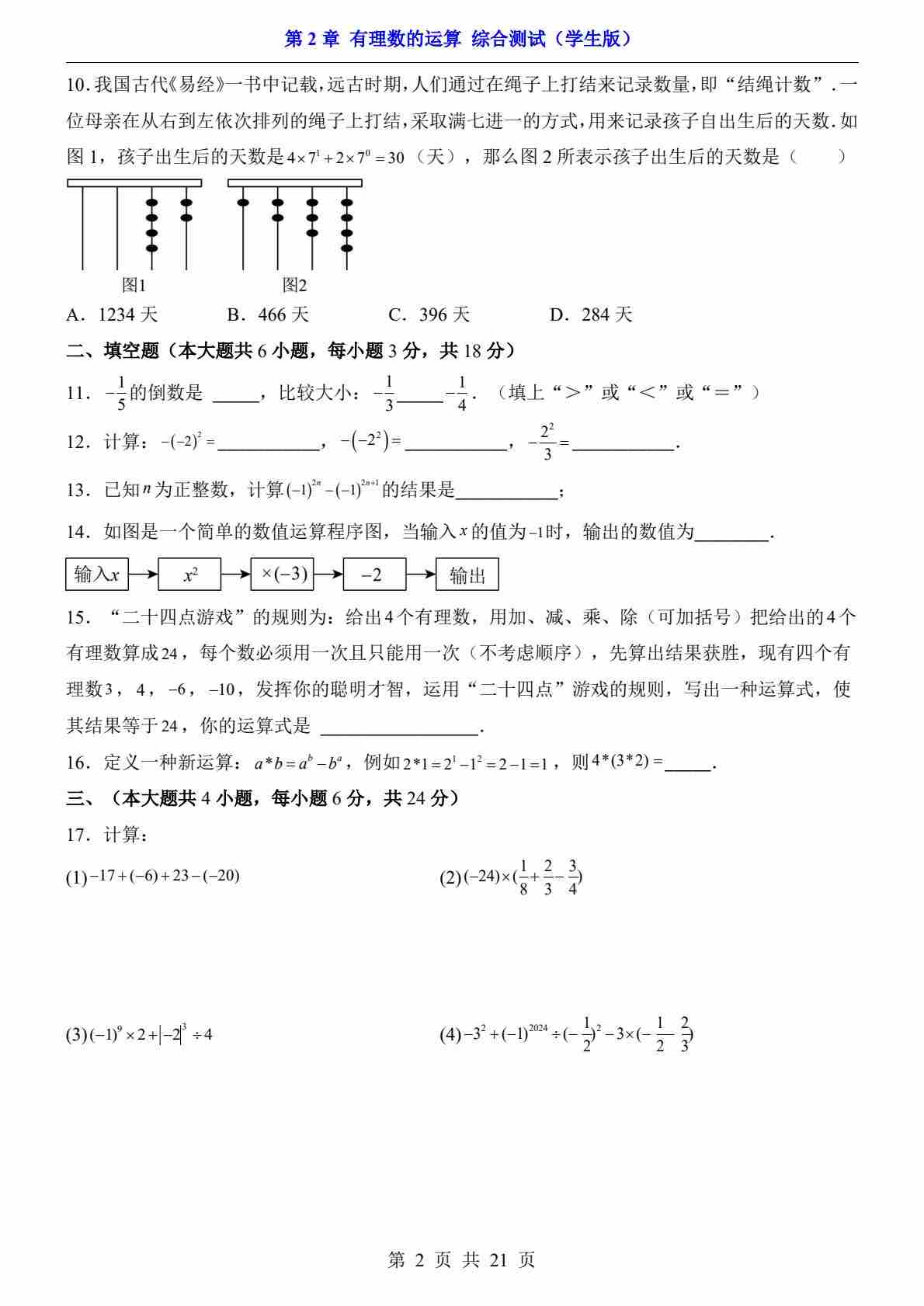 首页 > 全部 > 单元测试 > 第2章 有理数的运算(综合测试)
