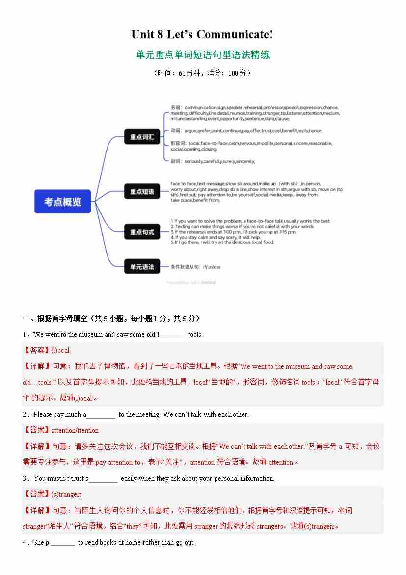 首页 > 全部 > 语法精练 > Unit 8 Let's Communicate! 单词短语句型语法 (教材考点精练) (解析版)