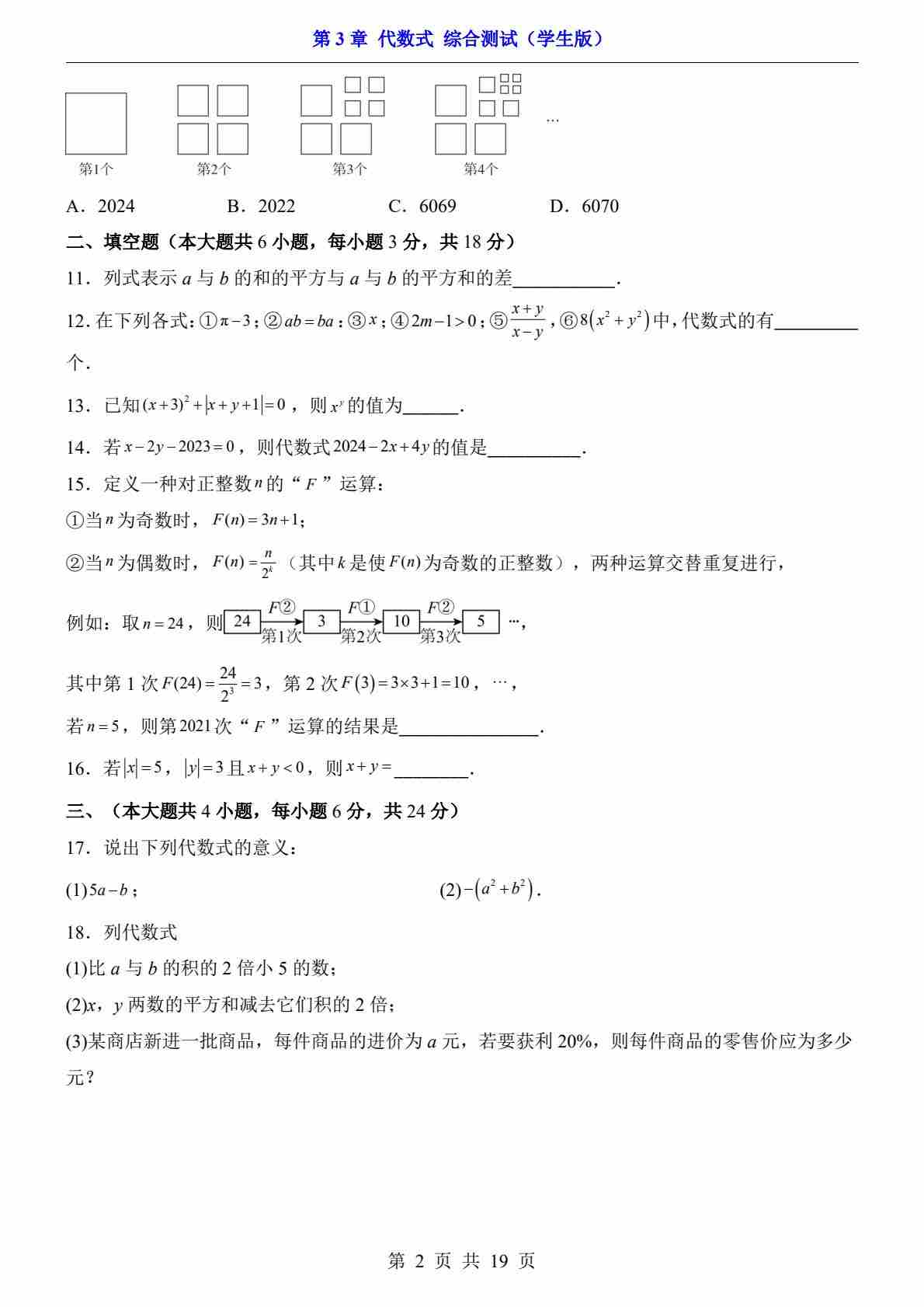 首页 > 全部 > 单元测试 > 第3章 代数式(综合测试)