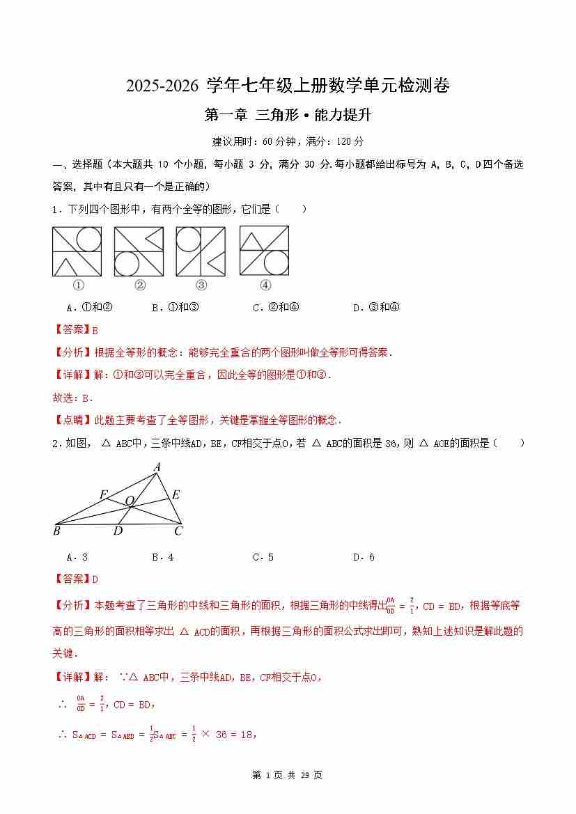 首页 > 全部 > 单元提升卷 > 七上数学第1章 三角形测试·提升卷(解析版)