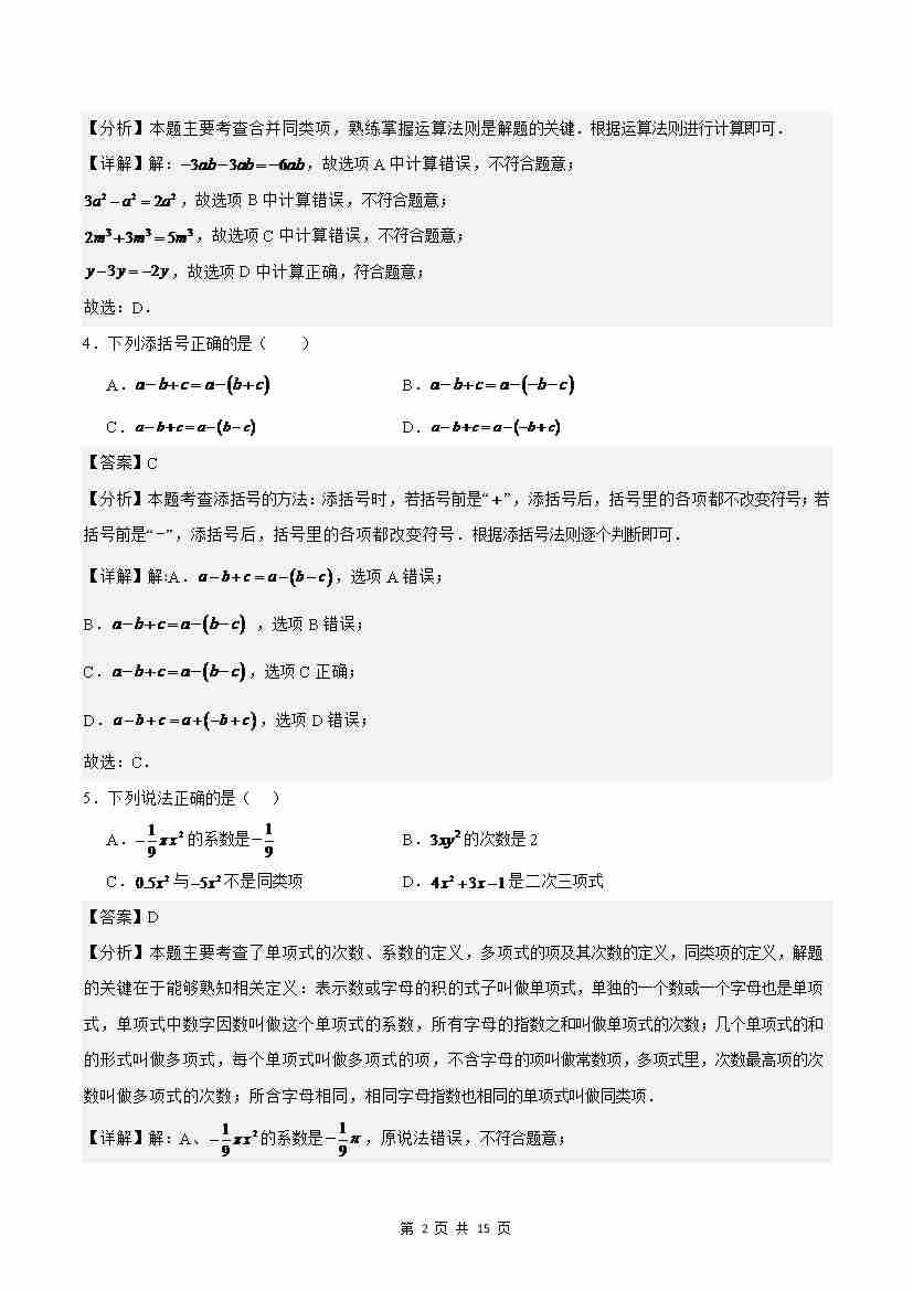首页 > 全部 > 单元测试 > 第4章 整式的加减(单元重点综合测试)(解析版)