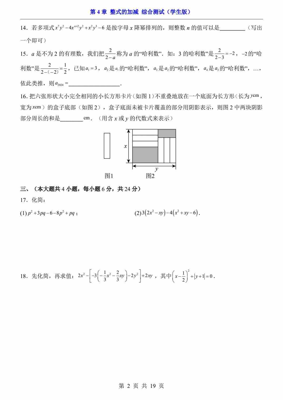 首页 > 全部 > 单元测试 > 第4章 整式的加减(综合测试)