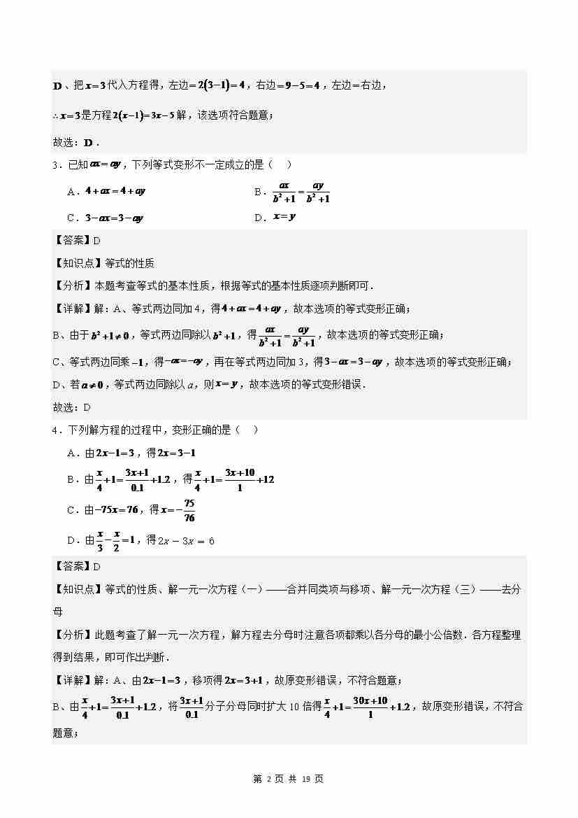 首页 > 全部 > 单元测试 > 第5章 一元一次方程(单元重点综合测试)(解析版)