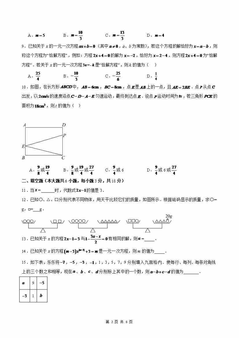 首页 > 全部 > 单元测试 > 第5章 一元一次方程(单元重点综合测试)(原卷版)