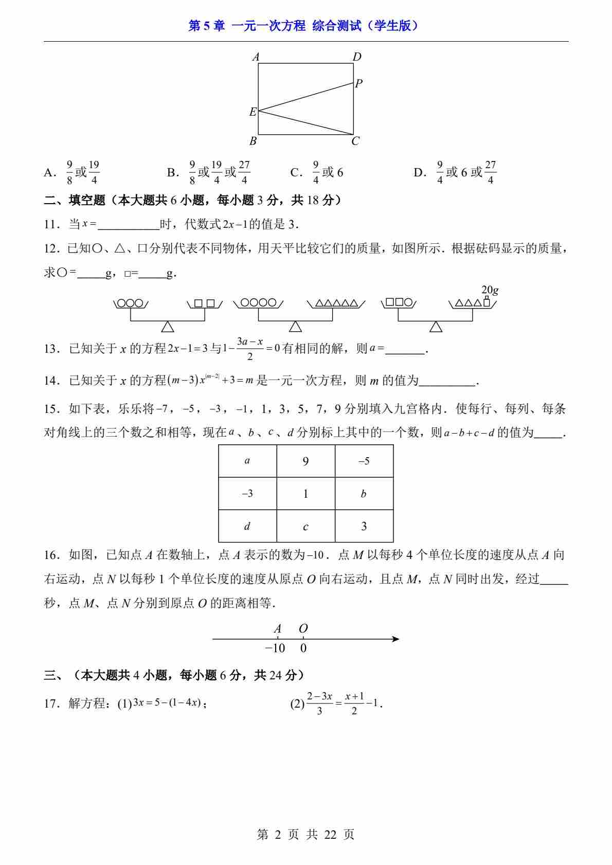 首页 > 全部 > 单元测试 > 第5章 一元一次方程(综合测试)