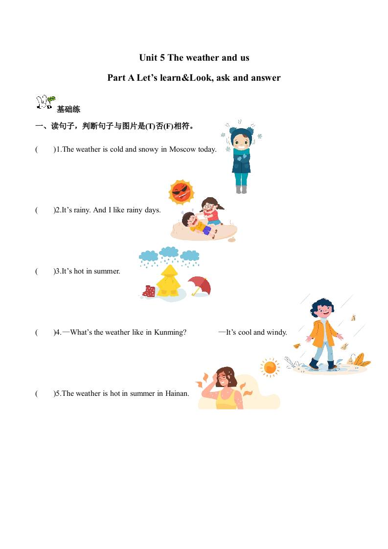 首页 > 全部 > 分层作业 > Unit 5 第2课时 Part A Let’s learn&Look, ask and answer (分层作业)英语人教PEP版四年级上册(新教材)