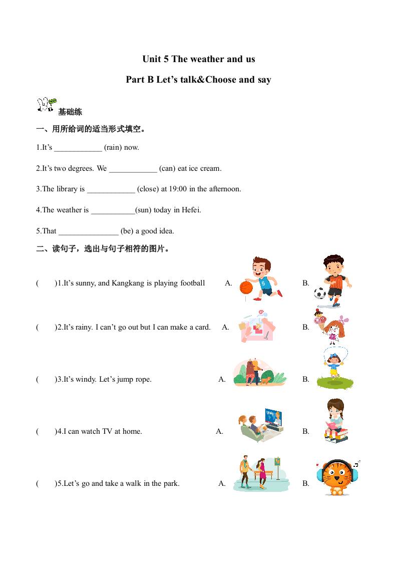 首页 > 全部 > 分层作业 > Unit 5 第4课时 Part B Let’s talk&Choose and say (分层作业)英语人教PEP版四年级上册(新教材)