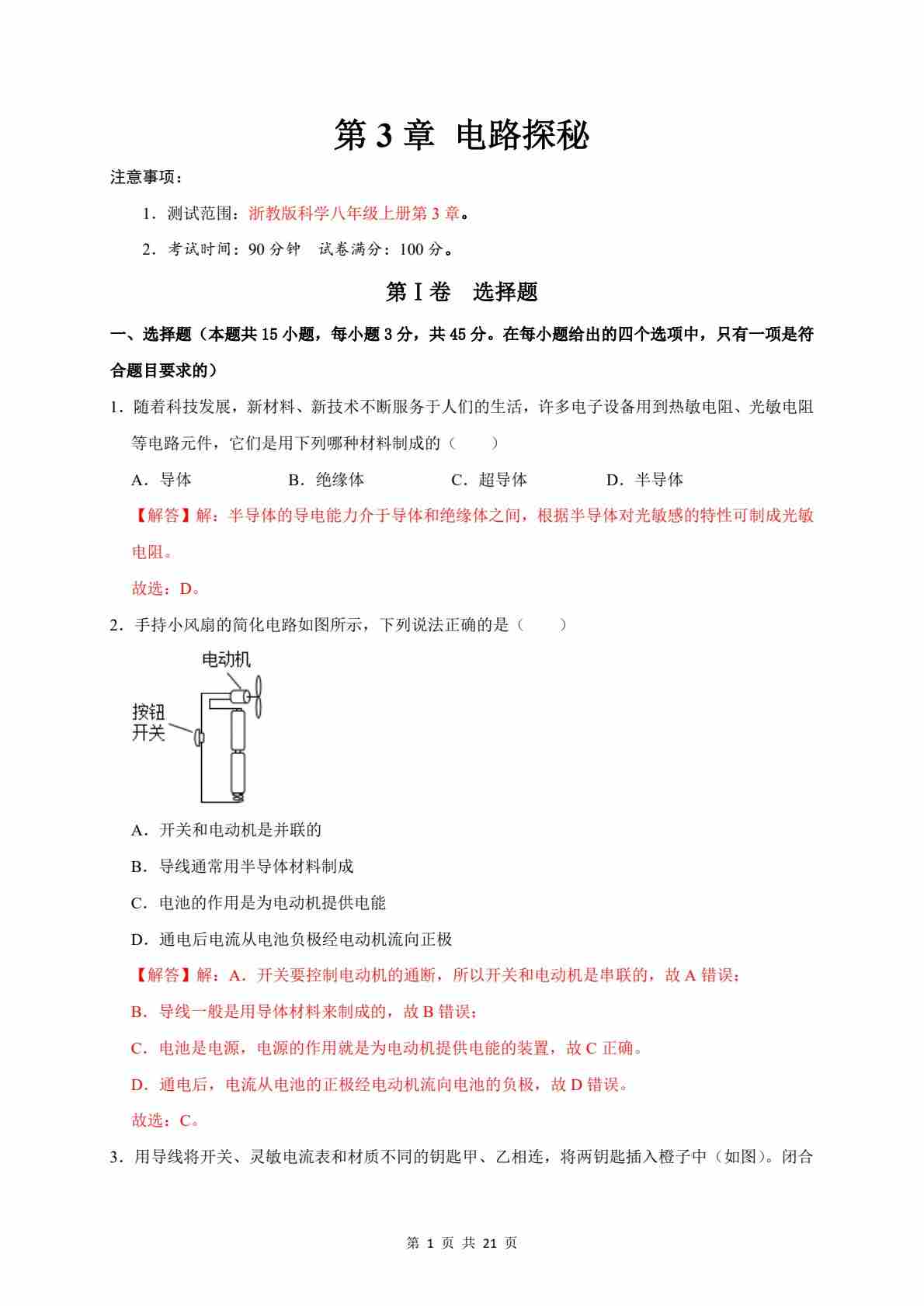 第3章 电路探秘(高效培优·单元测试)(解析版)