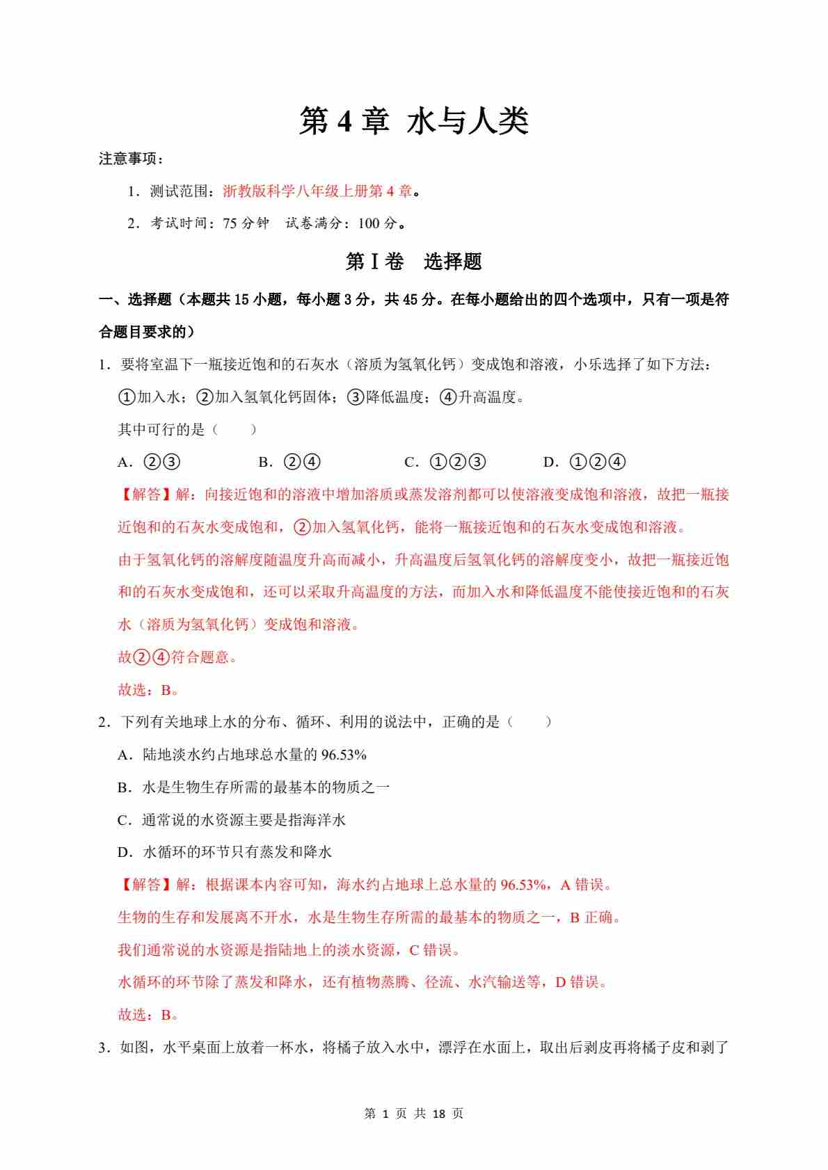 第4章 水与人类(高效培优·单元测试)(解析版)(1)