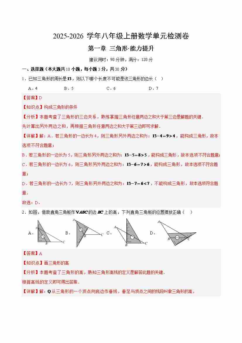 首页 > 全部 > 单元提升卷 > 第1章测试·提升卷(解析版)