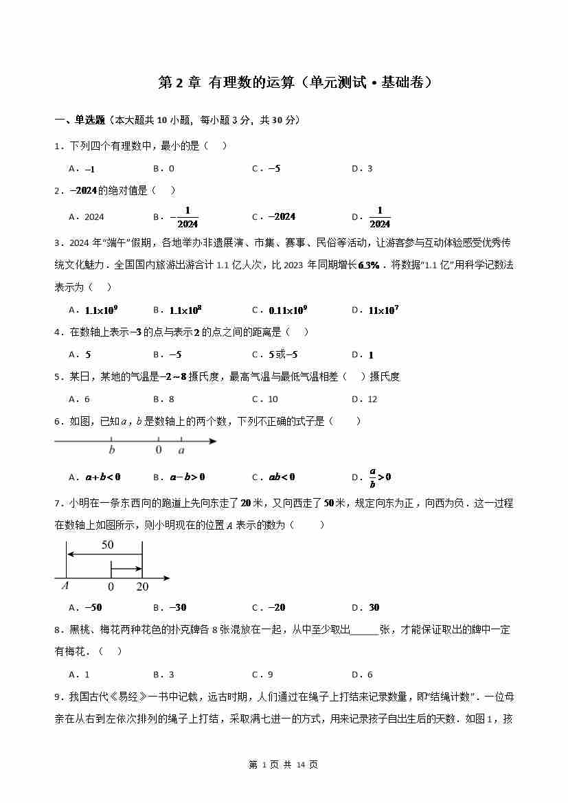第2章 有理数的运算(单元测试·基础卷)-2024-2025学年七年级数学上册基础知识专项突破讲与练(人教版)