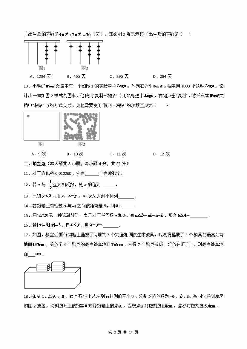 首页 > 全部 > 单元培优卷 > 第2章 有理数的运算(单元测试·基础卷)-2024-2025学年七年级数学上册基础知识专项突破讲与练(人教版)