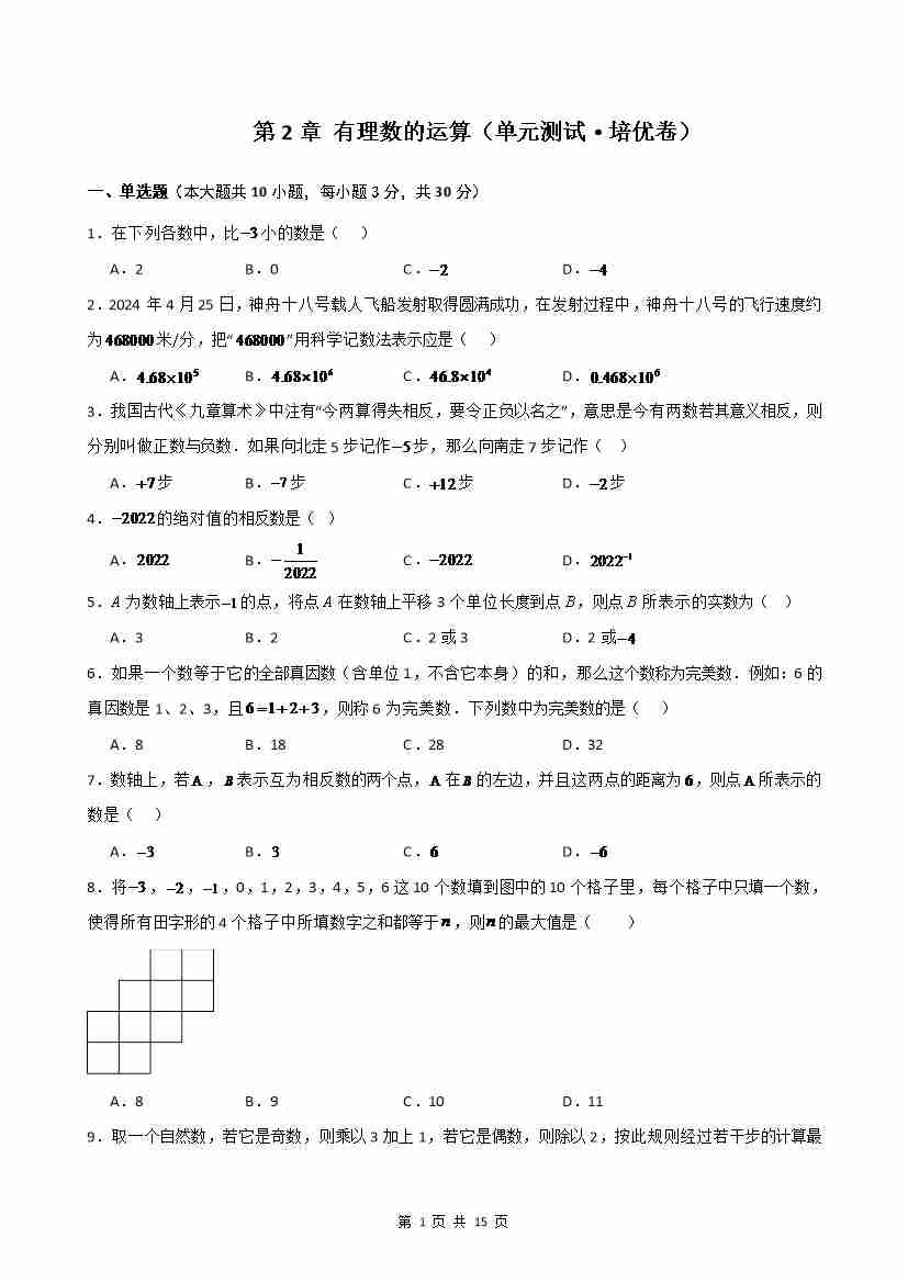 首页 > 全部 > 单元培优卷 > 第2章 有理数的运算(单元测试·培优卷)-2024-2025学年七年级数学上册基础知识专项突破讲与练(人教版)