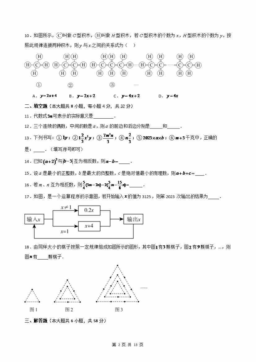 第3章 代数式(单元测试·基础卷)-2024-2025学年七年级数学上册基础知识专项突破讲与练(人教版)