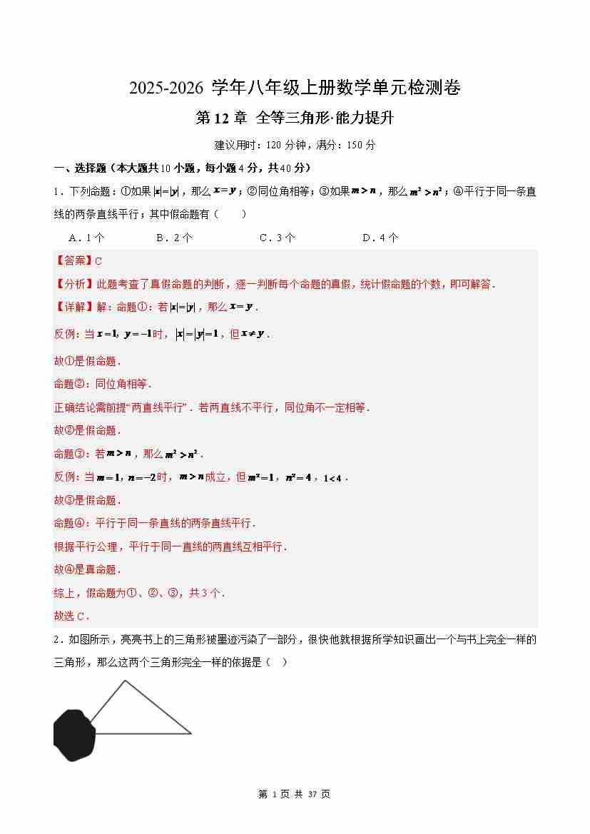第12章 全等三角形(单元测试·提升卷)(解析版)