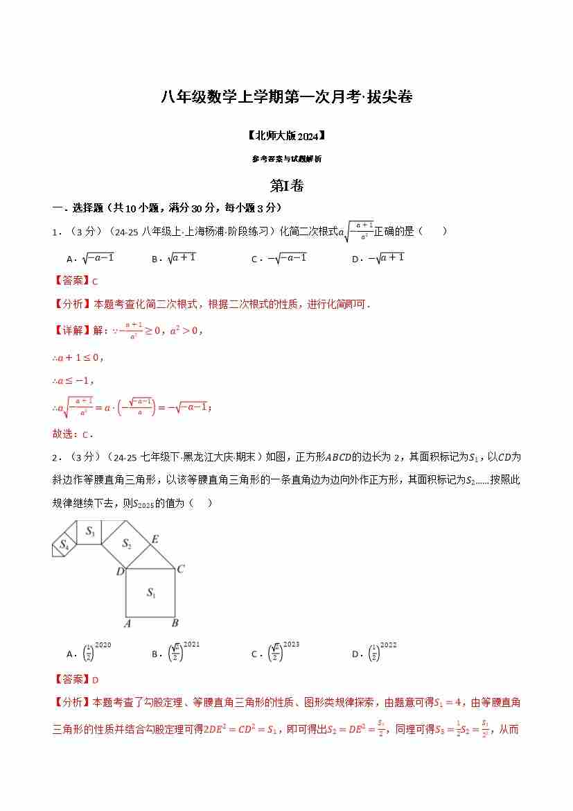 八年级数学上学期第一次月考·拔尖卷(举一反三)(教师版)