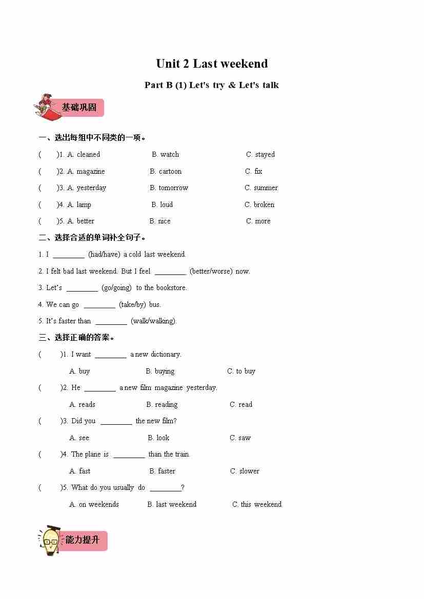 首页 > 全部 > 一课一练 > Unit2 Last weekend PartB Let's try&Let's talk(第3课时)-六年级英语下册设计系列(人教PEP版)