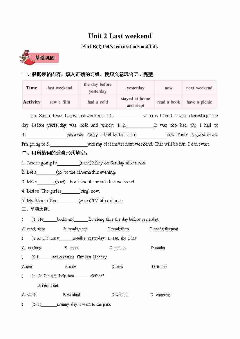 Unit 2 Last weekend Part B Let's learn&look and talk(第4课时)-六年级英语下册(人教PEP版)