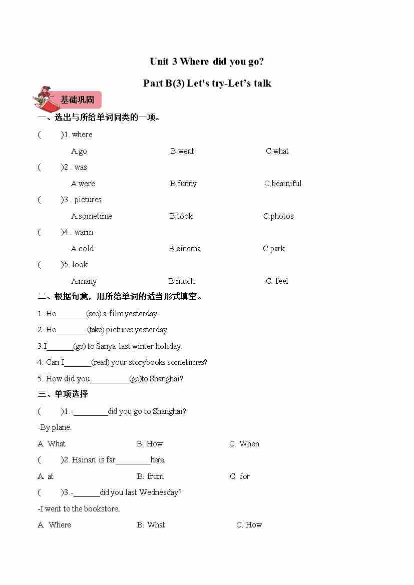 Unit 3Where did you go PartB Let's try&Let's talk(第3课时)同步分层作业-六年级英语下册(人教PEP版)
