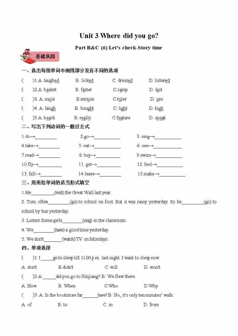 Unit 3 Where did you go PartB&C Let's check-story time(第6课时)同步分层作业-六年级英语下册(人教PEP版)
