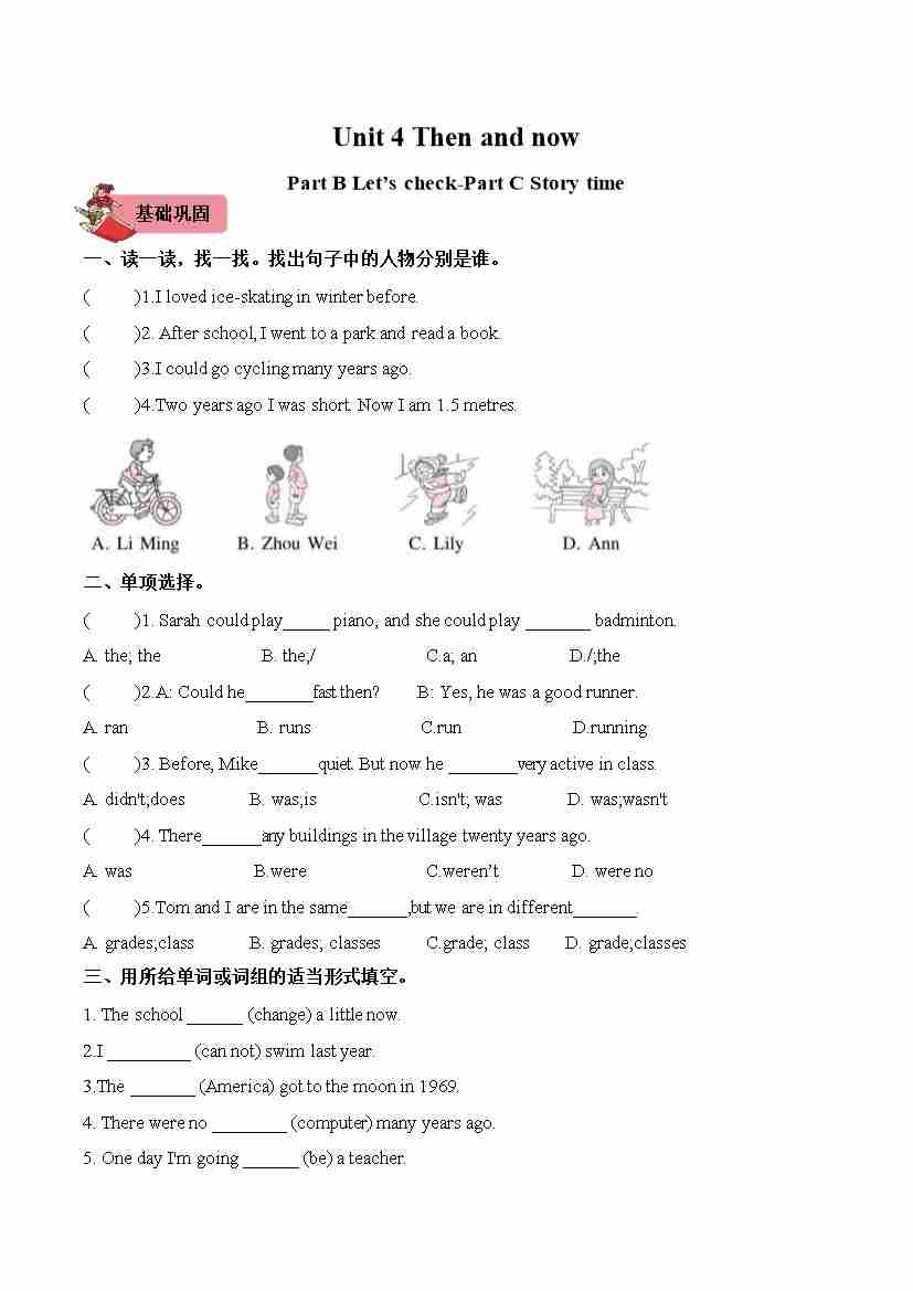 Unit4 Then and now PartB Let’s check-PartC Story time(第6课时)同步分层作业-(人教PEP版)
