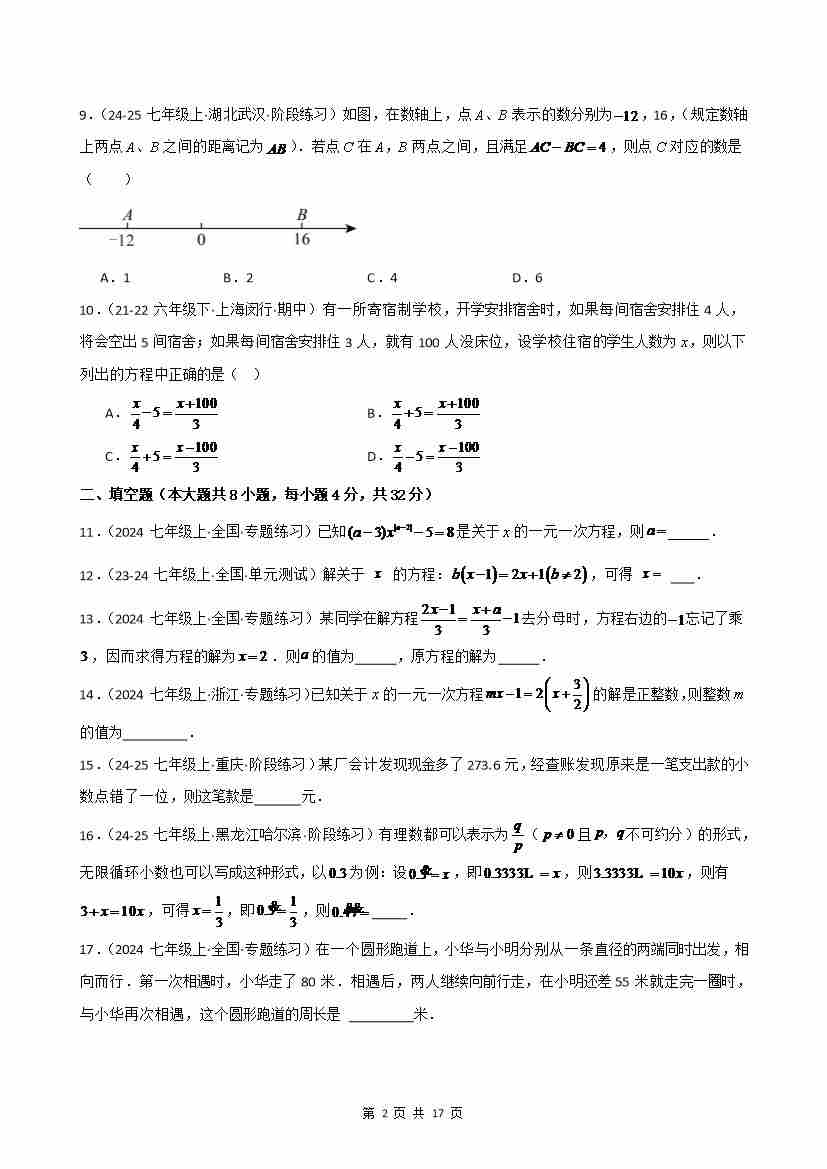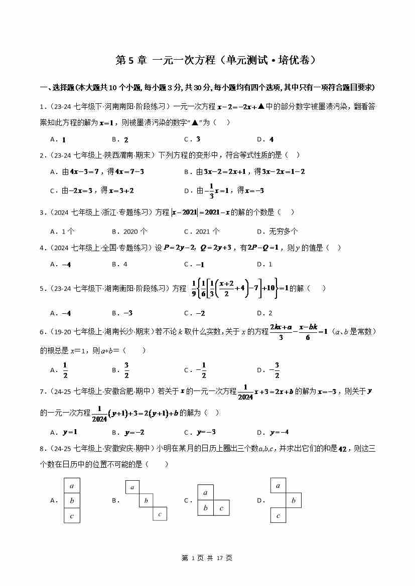 首页 > 全部 > 单元培优卷 > 第5章 一元一次方程(单元测试·培优卷)-2024-2025学年七年级数学上册基础知识专项突破讲与练(人教版)