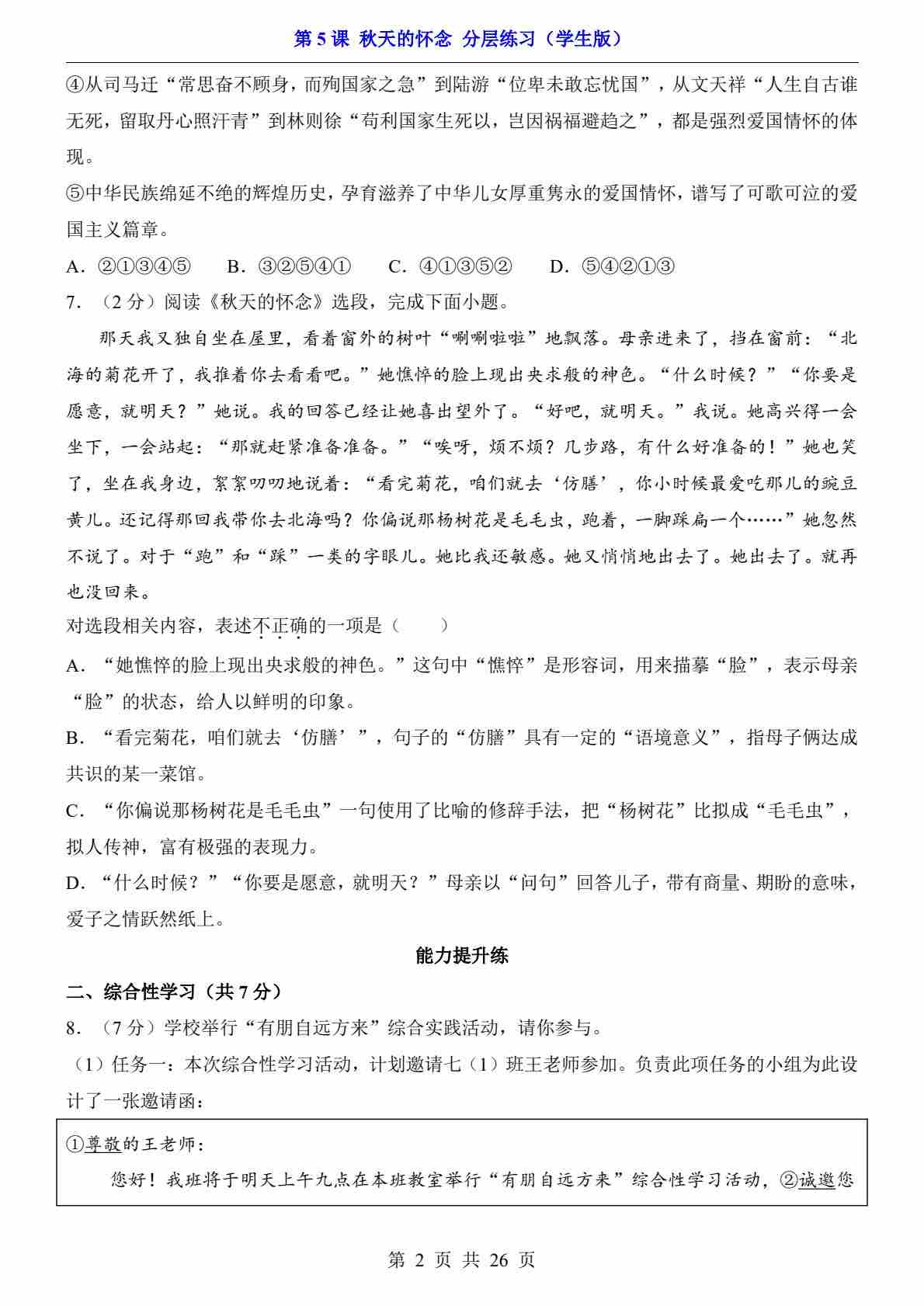 首页 > 全部 > 分层练习 > 第5课 秋天的怀念(分层练习)