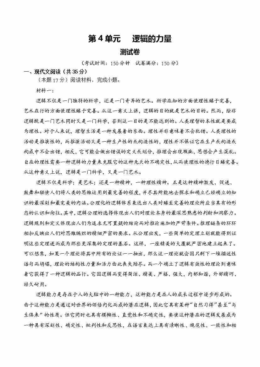 第4单元 (单元卷·测试卷)(教师版)
