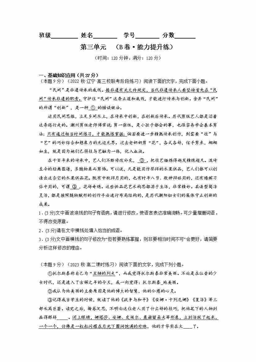 首页 > 全部 > 单元AB卷 > 第三单元(单元检测)(B卷•能力提升练)(学生版)