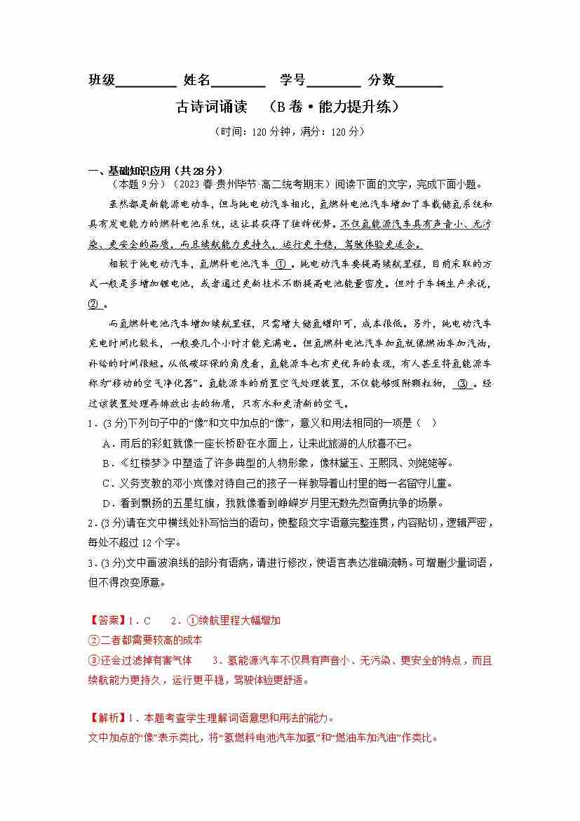 首页 > 全部 > 单元AB卷 > 古诗词诵读(单元检测)(B卷•能力提升练)(教师版)
