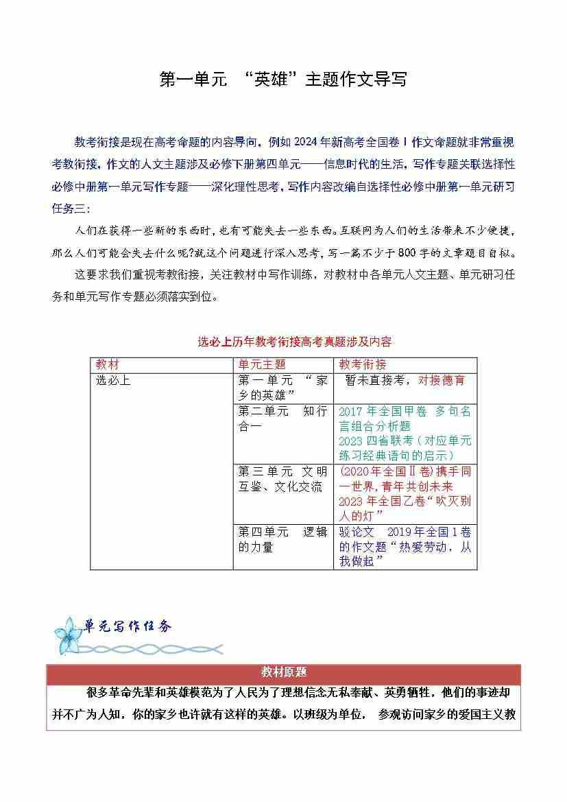 首页 > 全部 > 单元作文 > 专题02:“英雄主题“主题作文导写-(统编版选必上册)