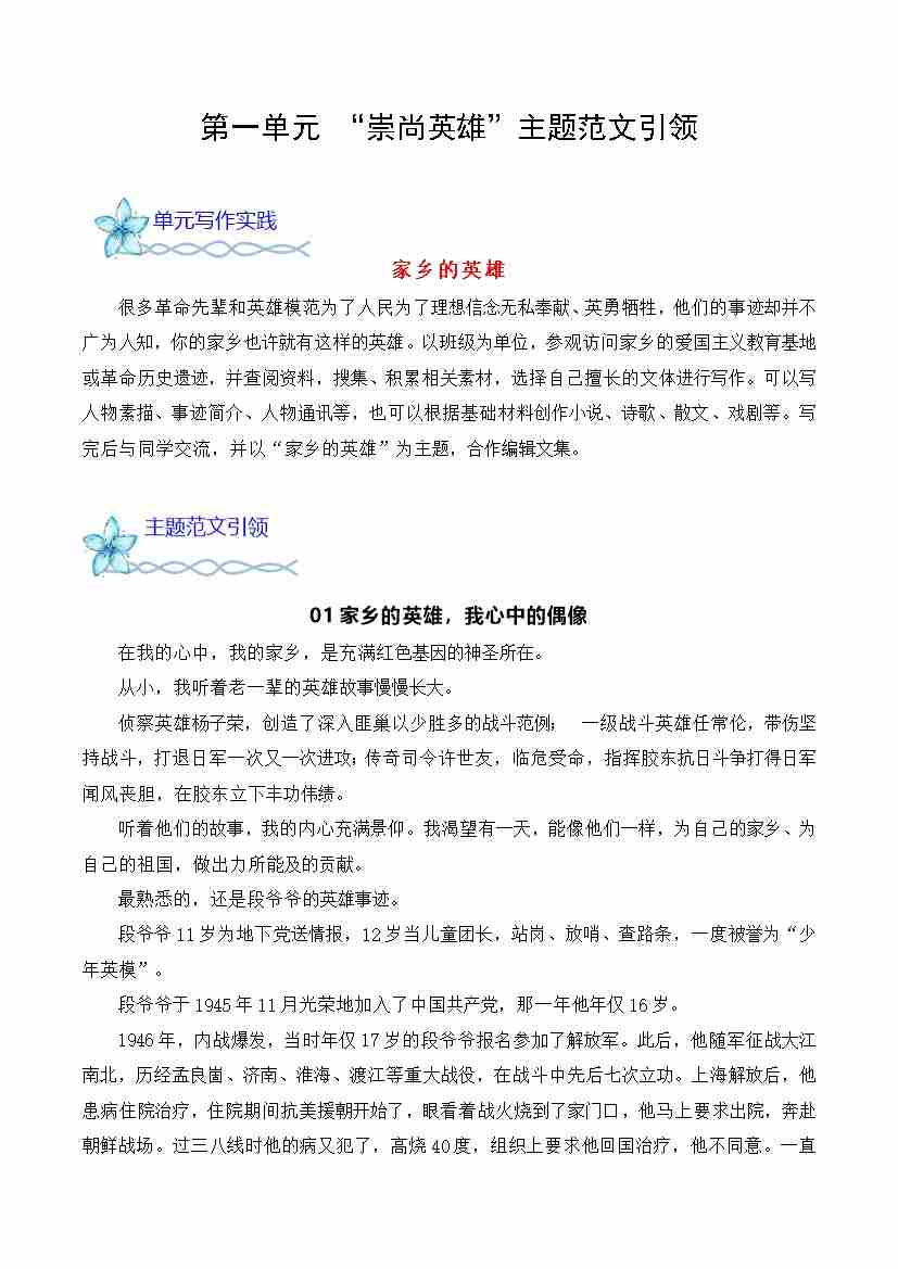 首页 > 全部 > 单元作文 > 专题04:”崇尚英雄“主题范文引领-(统编版选必上册)