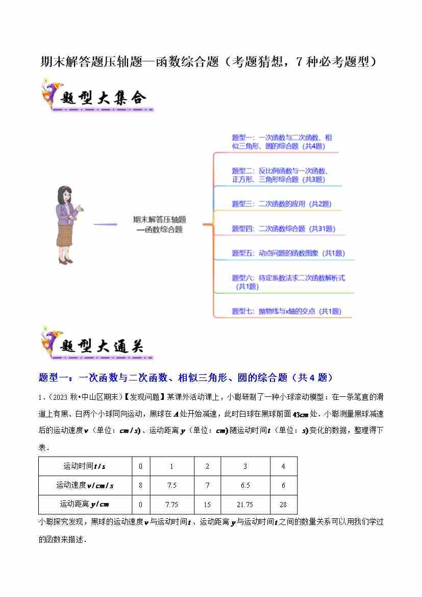 首页 > 全部 > 期末专项 > 期末解答题压轴题—函数综合题(考题猜想,7种必考题型)学生版