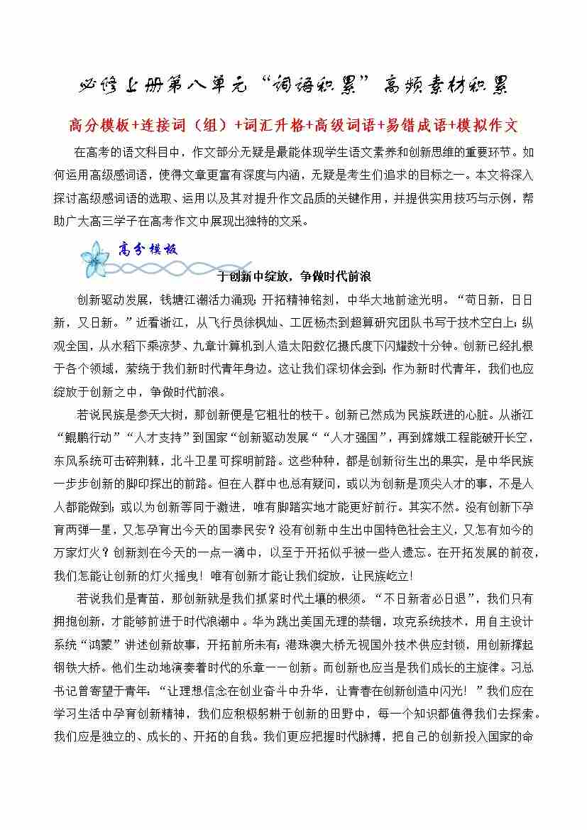 首页 > 全部 > 单元作文 > 专题03:“词语积累”高频素材积累-(统编版必修上册)