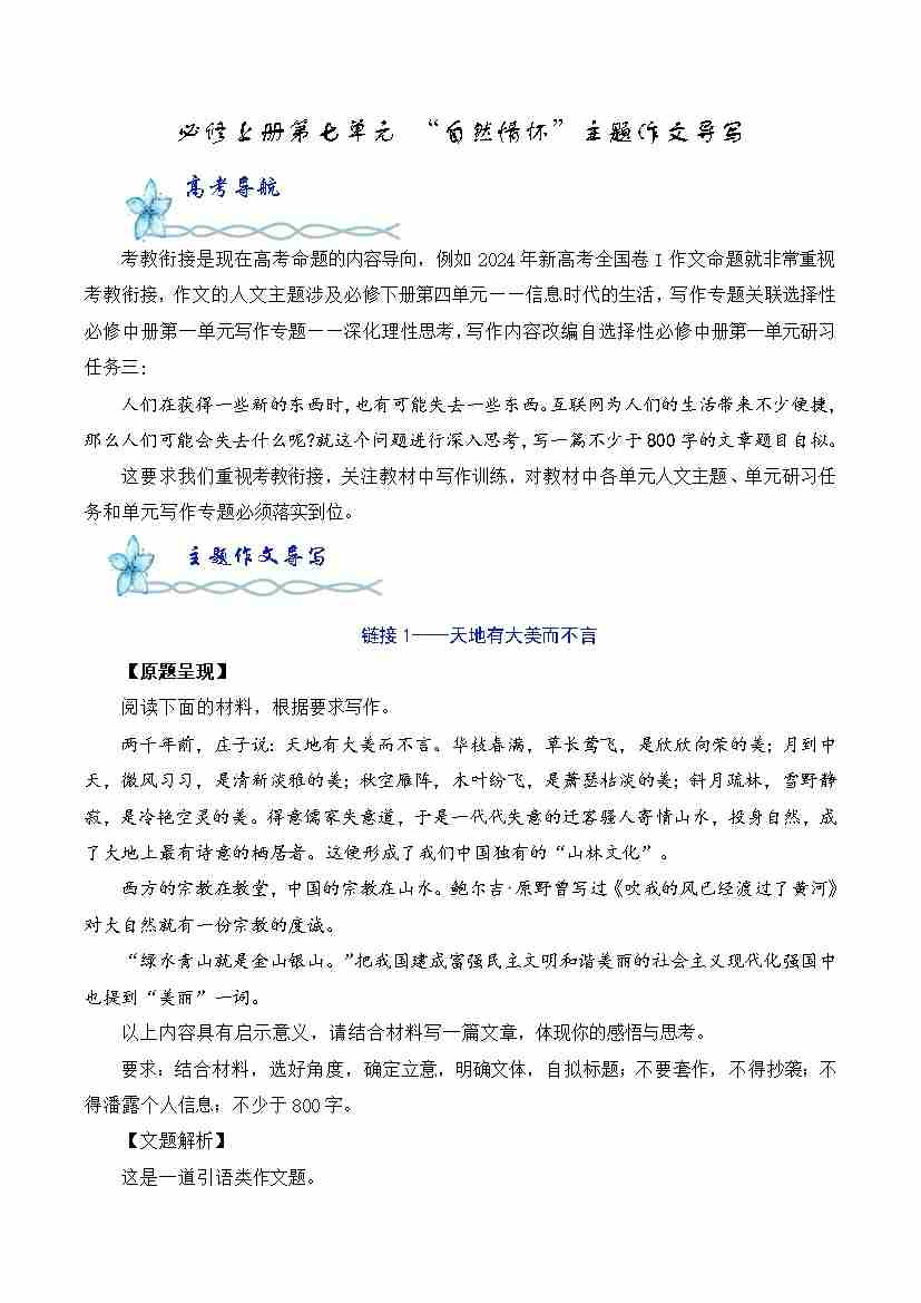 首页 > 全部 > 单元作文 > 专题02: “自然情怀”主题作文导写-(统编版必修上册)