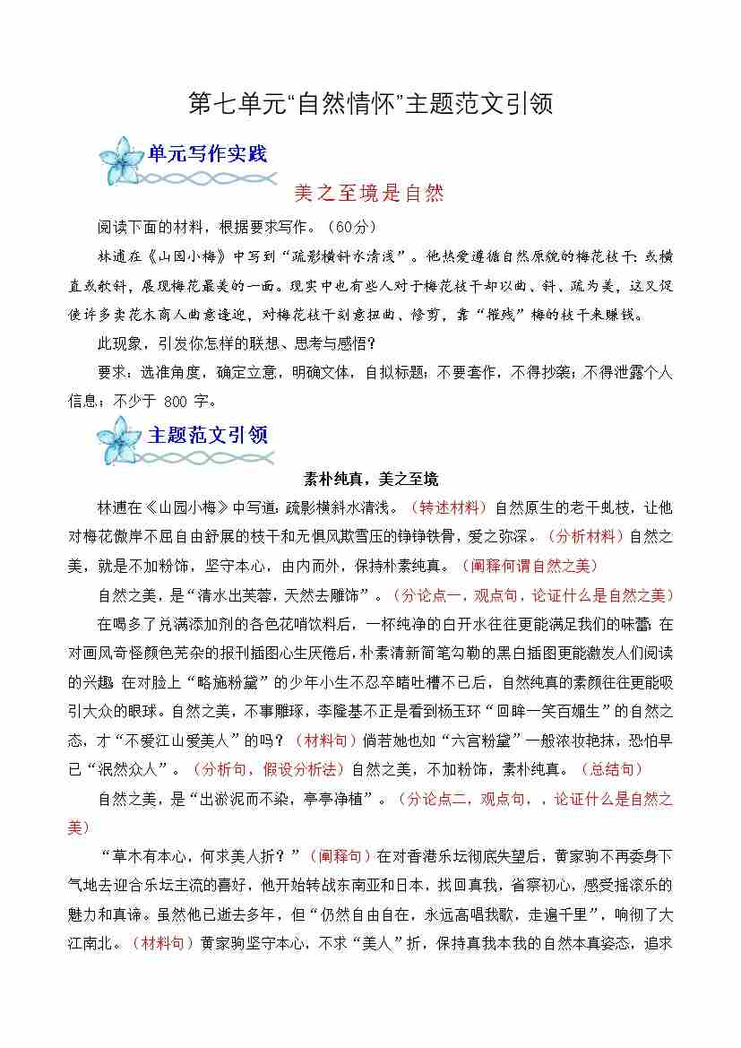 专题04: ”自然情怀“主题范文引领-(统编版必修上册)