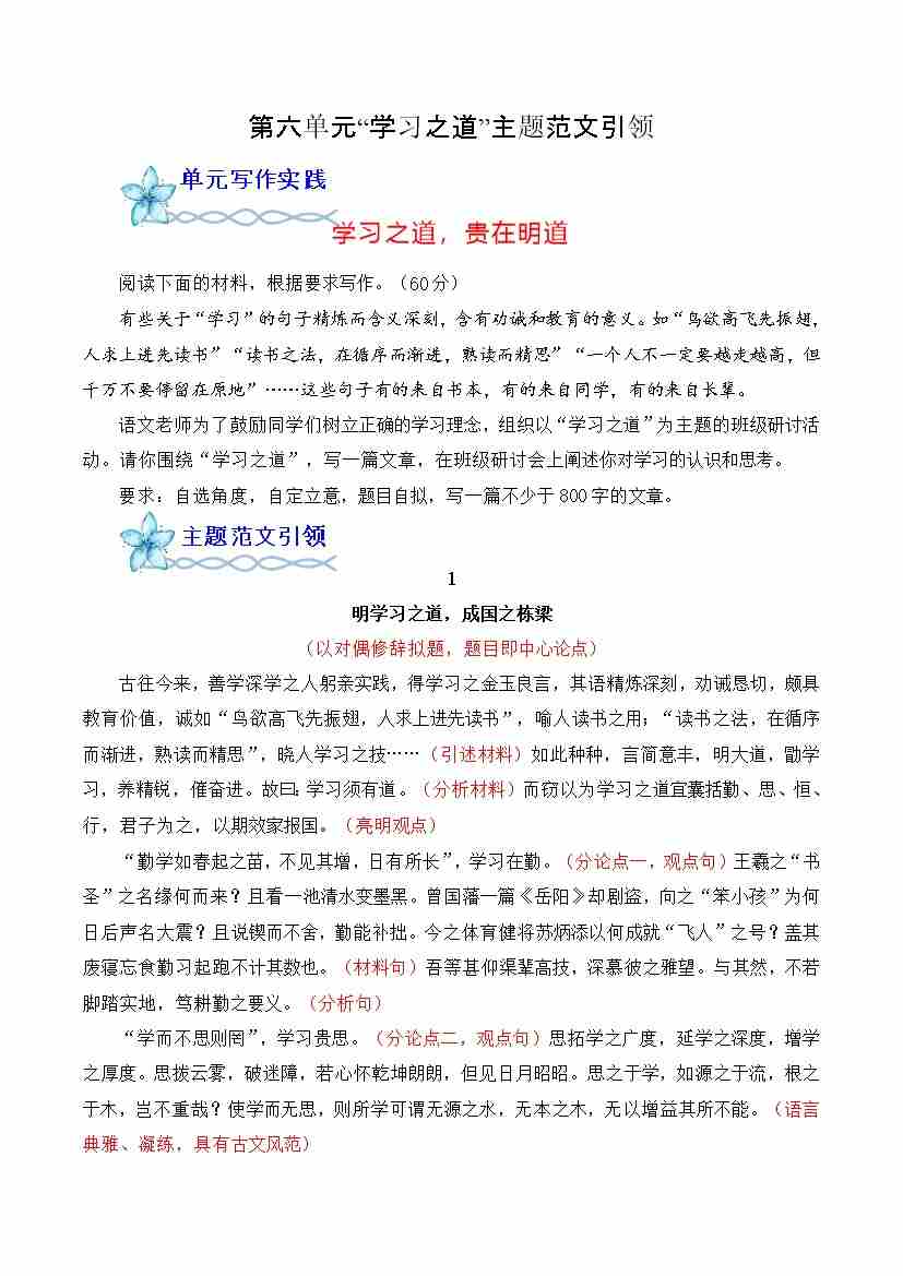 首页 > 全部 > 单元作文 > 专题04: ”学习之道“主题范文引领-(统编版必修上册)