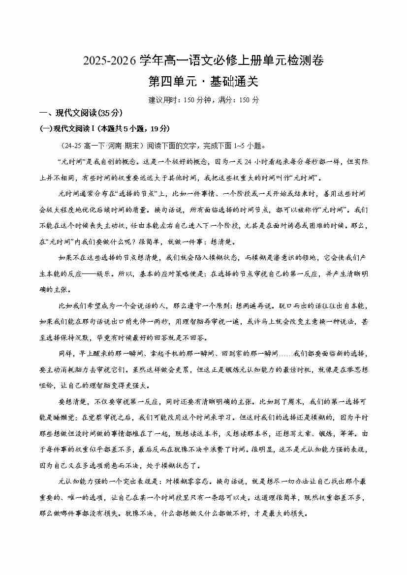 首页 > 全部 > 单元基础卷 > 高一语文第四单元测试·基础卷(解析版)