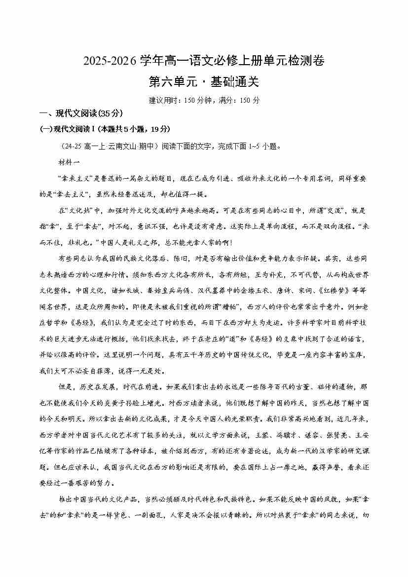 首页 > 全部 > 单元基础卷 > 高一语文第六单元测试·基础卷(解析版)