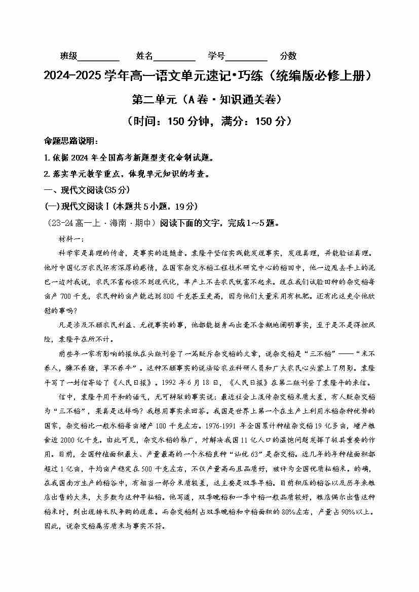 首页 > 全部 > 单元AB卷 > 第二单元(A卷·知识通关卷)教师版